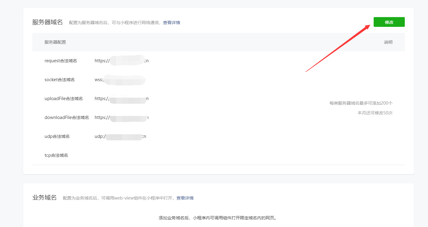 微信与自定义开发的程序进行数据的交互中,安全很重要,【服务器域名】的设置,就是来确保当前微信小程序允许哪些域名下的数据能进行交互。